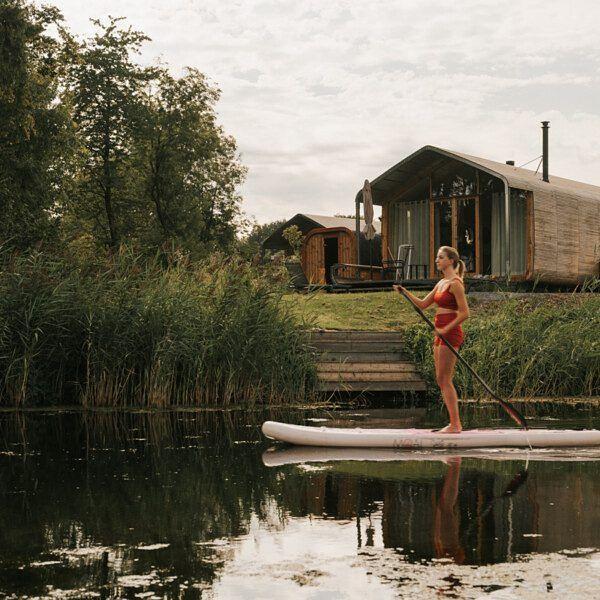 Even in break in de natuur? Aan het water in het Horsterwold, Zeewolde vind je een unieke plek waar je je volledig kunt terugtrekken. Verspreid over 10 hectare staan luxe verblijven, er natuur om je heen, een laid-back vibe, je eigen stukje strand met bedjes, en bonuspunten voor het restaurant met terras. Je kunt er suppen, zwemmen een potje jeu-de-boules spelen, deelnemen aan een yoga lesje, barbecueën of chillen aan het vuur. Vervelen hóeft niet, maar mag wel. Er staan allerlei verschillende accommodaties, maar laten we het nu even hebben over de Haciënda.