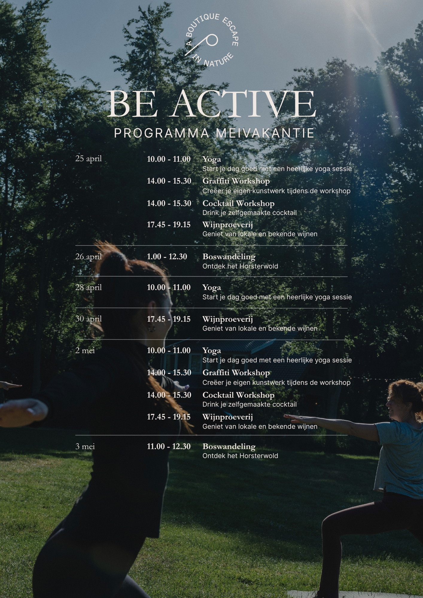 De meivakantie staat volop in het teken van het voorjaar; de aangename temperaturen, de natuur in bloei en de zon die tevoorschijn komt. Bij de Parel van Horsterwold vier je de meivakantie op z'n allerbest! Verblijf in een unieke glamping tent en ervaar het kampeergevoel met een luxe touch! Of ontdek de lodges en villa's, optioneel met privé wellness. Daarnaast kun je voor ontspanning ook nog eens terecht in de centrale Wellness Area, terwijl je voor inspanning in de Workout Area je hart kunt ophalen!